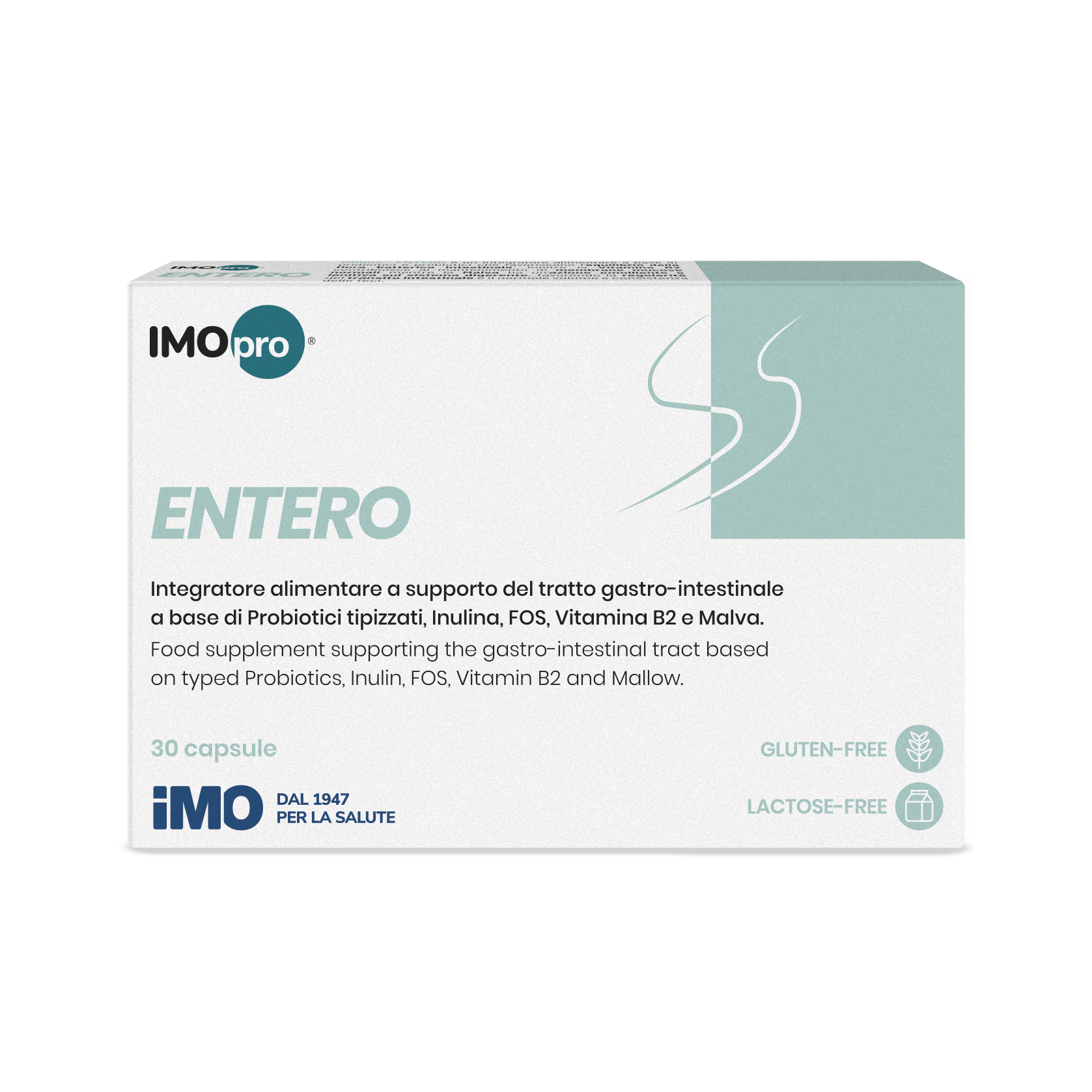 The intestine is the last part of the digestive system, also dubbed the second brain, since it contains a real nervous system. In order to keep the whole organism in perfect shape, it is important to take care of it! Yet, often we suffer from intestinal disorders caused by stress, bad eating habits, infections and the use of antibiotics. IMOpro Entero is a pro & pre-biotics food supplement designed to aid intestinal flora balance. It contains 15 billion live probiotics of human origin, Vitamin B2, Mallow, FOS and Inulin. IMOpro Entero may be an invaluable aid in supporting the balance of the gastrointestinal tract in cases of gastrointestinal disorders, like bloating, stomach pain, constipation, abdominal cramps and diarrhoea¹.
