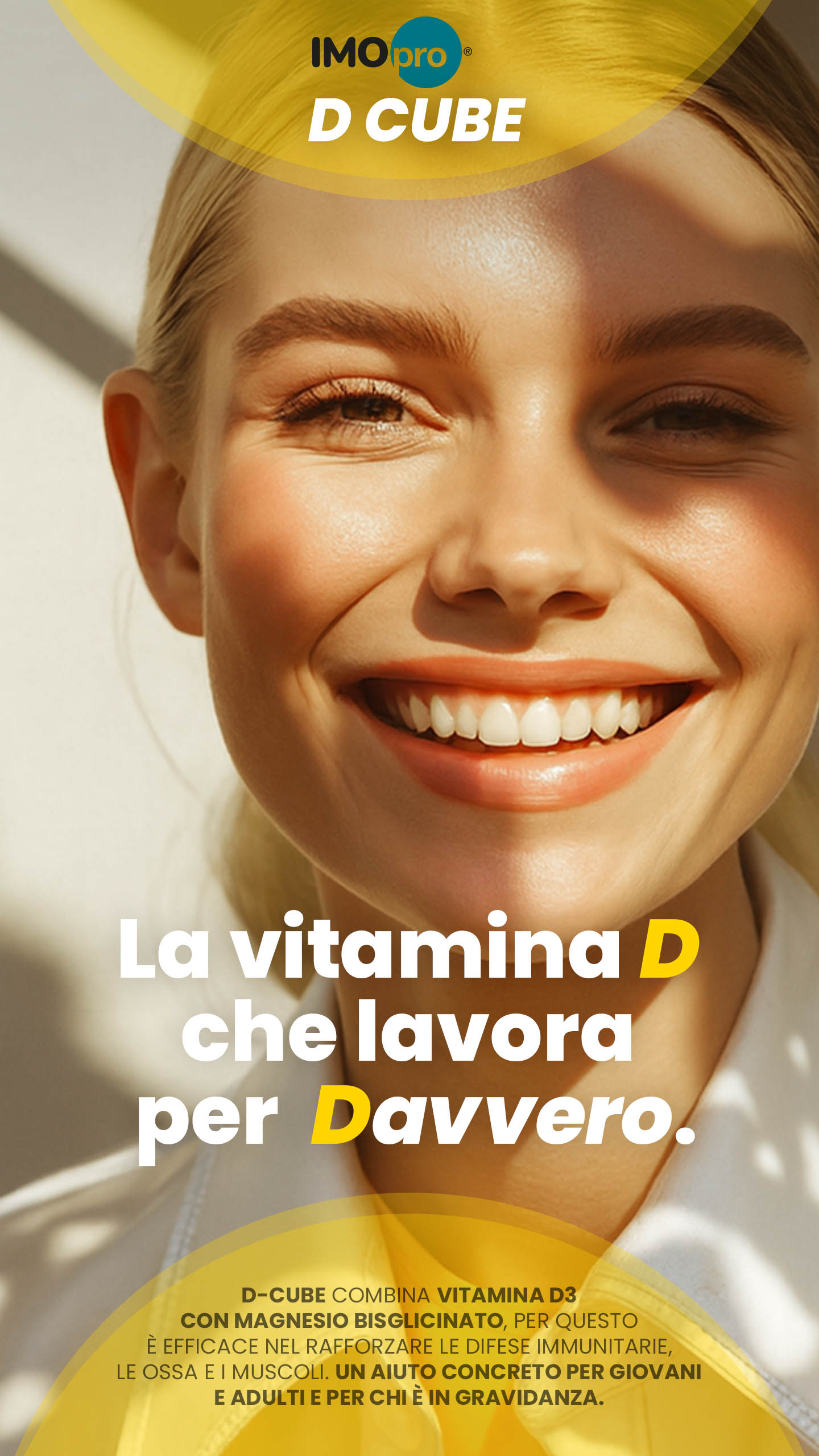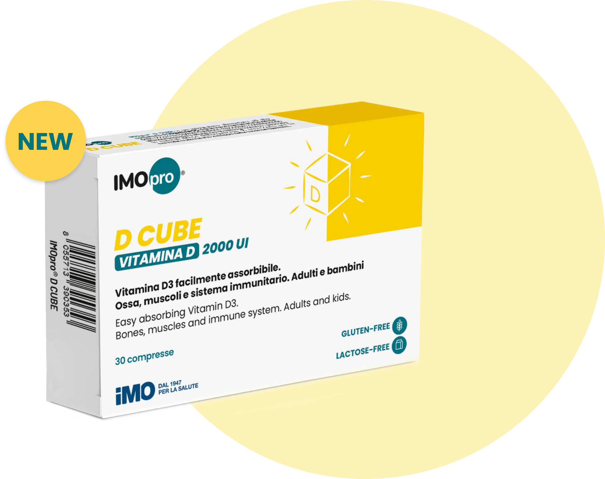 Con D CUBE, IMO ha re-inventato la Vitamina D rendendola più efficace, grazie all’abbinamento con il Magnesio bisglicinato, una forma altamente biodisponibile e delicata sullo stomaco.